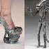 Sepatu berbahan logam ini memiliki alur-alur layaknya tubuh alien. Tak hanya bentuknya sepatu ini menjadi lebih ekstrem karena menggunakan hak setinggi 10 inch (sekitar 25 cm).